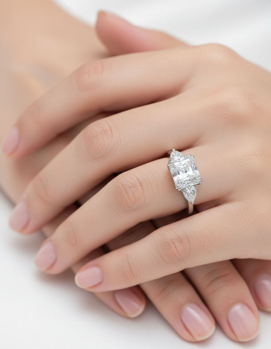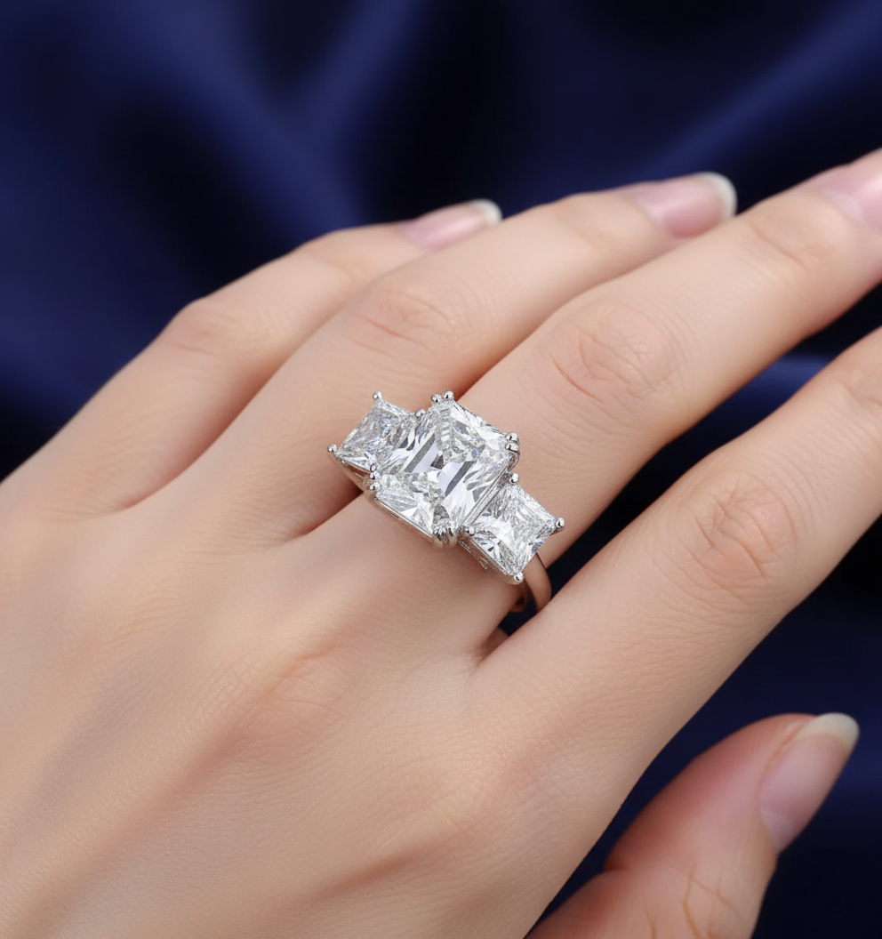 Radiant Cut Three-Stone Sterling Silver Engagement Ring